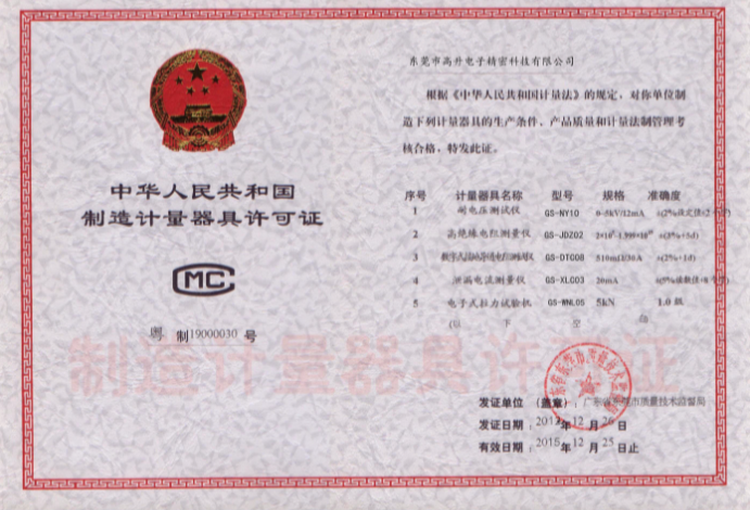 計(jì)量許可證